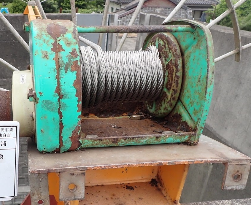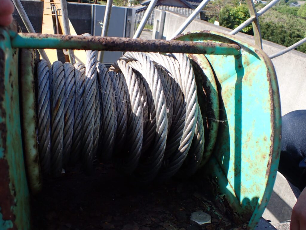 巻上機ドラム内でワイヤーが緩んで乱巻き状態でした😱